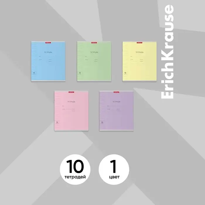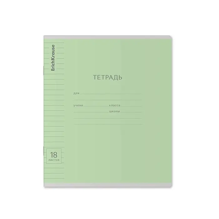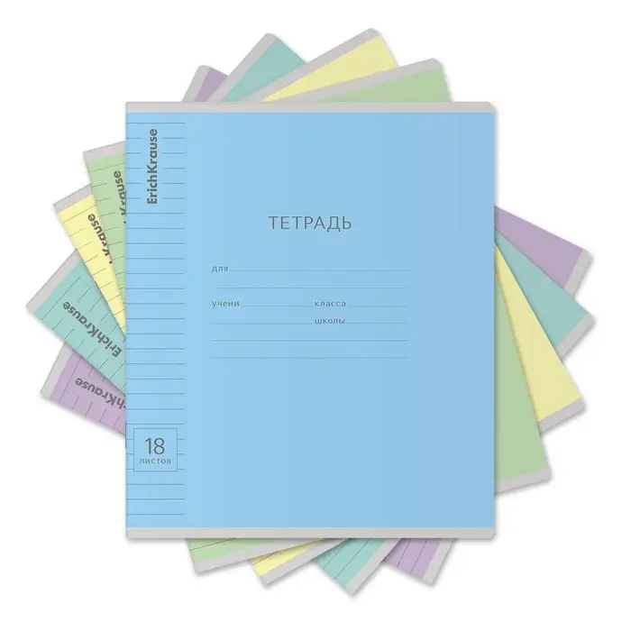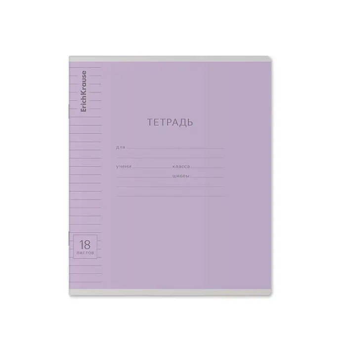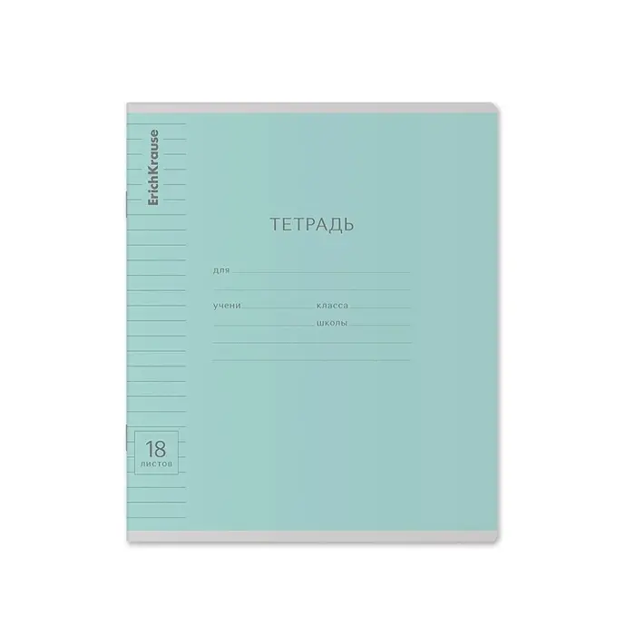 Тетрадь школьная ученическая формата А5+ (170х203 мм). Обложка из высококачественного мелованного картона плотностью 180 г/м2. В блоке 18 листов в линейку с полями. Бумага офсетная плотностью 60 г/м2. Цвет линовки - синий. Скругленные уголки обложки и блока. Тип скрепления - скоба. Тетради одного цвета упакованы в термоусадочную пленку по 10 штук – по 1 цвету. Товар поставляется в нескольких вариантах цвета без возможности выбора.