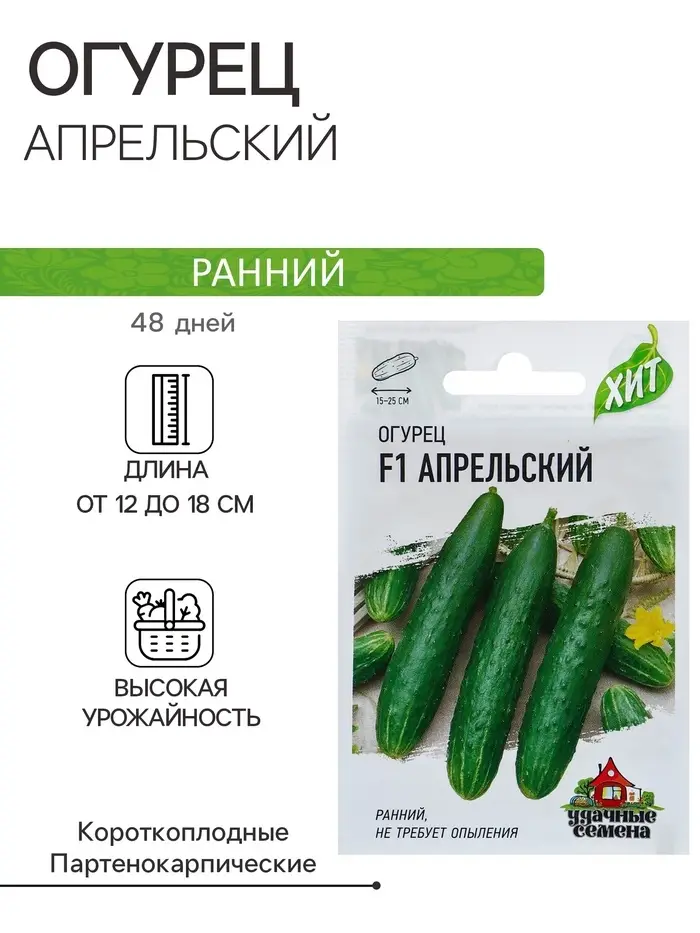 Семена Огурец "Апрельский" F1, скороспелый, партенокарпический, 0,3 г серия ХИТ х3