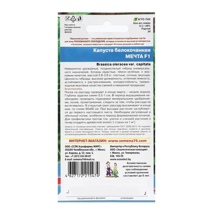 Семена Капусты белокочанной "Мечта", 0,3 г