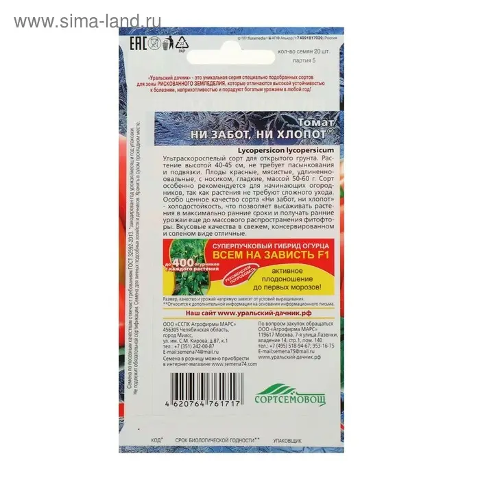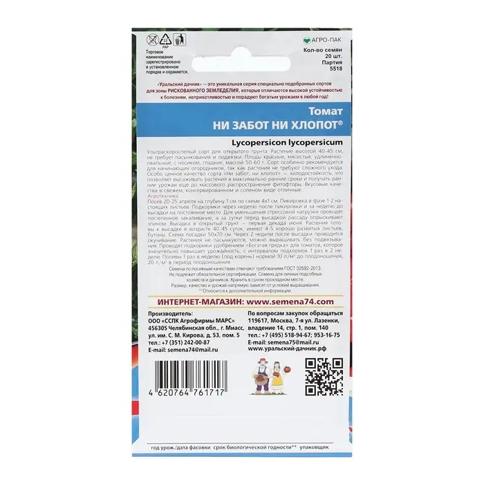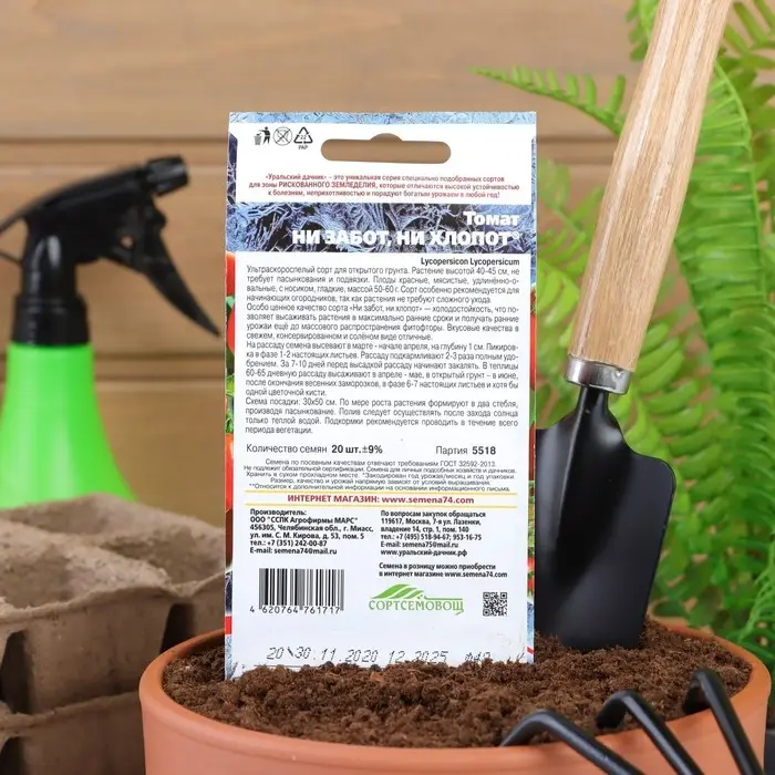 Семена Томат "Ни забот, ни хлопот", ультраскороспелый, детерминантный,низкорослый, 20 шт