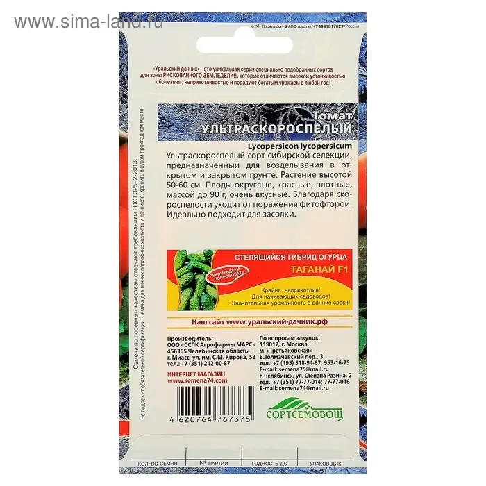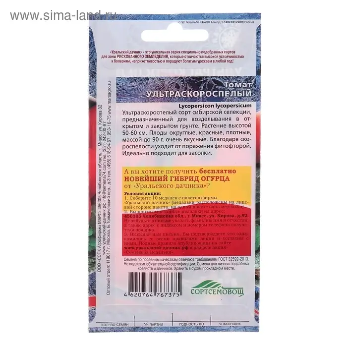Семена Томат "Ультраскороспелый",детерминантное,низкорослый, 20 шт.