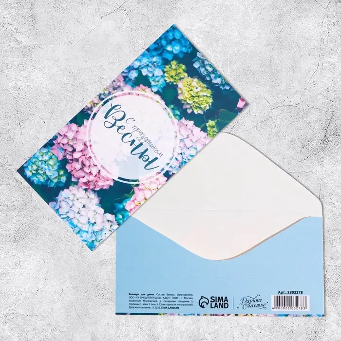 Конверт для денег «С праздником весны», 16.5×8 см