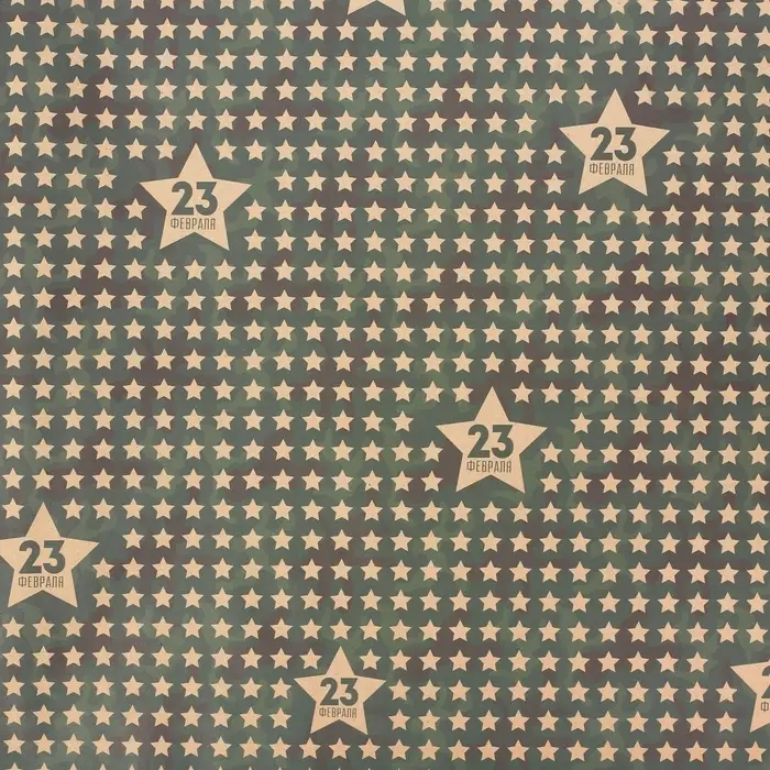 Бумага упаковочная крафтовая «Звёзды 23 февраля», 50 х 70 см