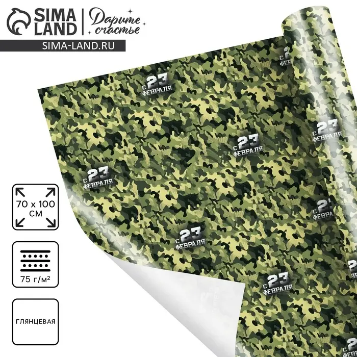 Бумага упаковочная глянец «Камуфляж», 23 февраля, 100 х 70 см