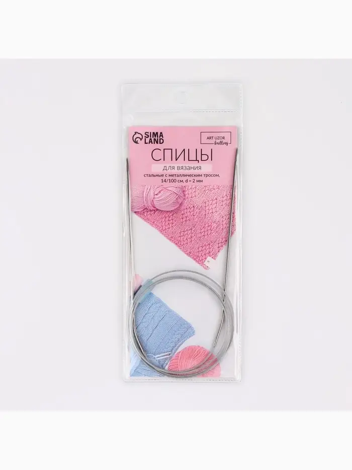 Спицы круговые, для вязания, с металлическим тросом, d=2 мм, 14/100 см