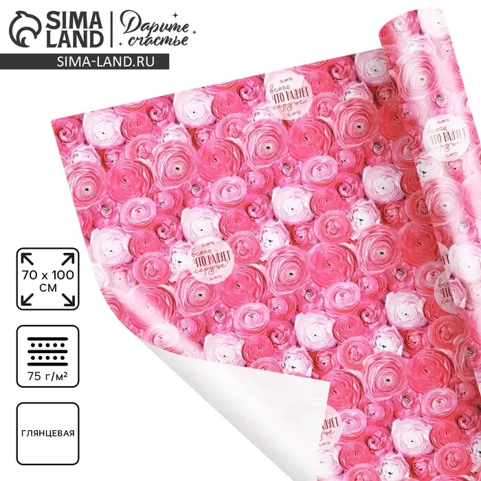 Бумага упаковочная глянцевая «Яркие цветы», 70 х 100 см