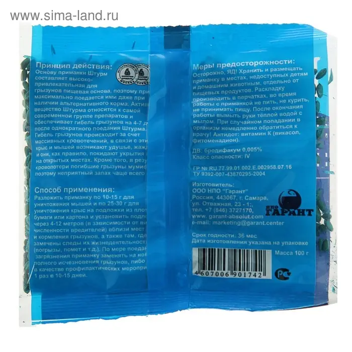 Назначение: универсальная приманка для уничтожения мышей и крыс.