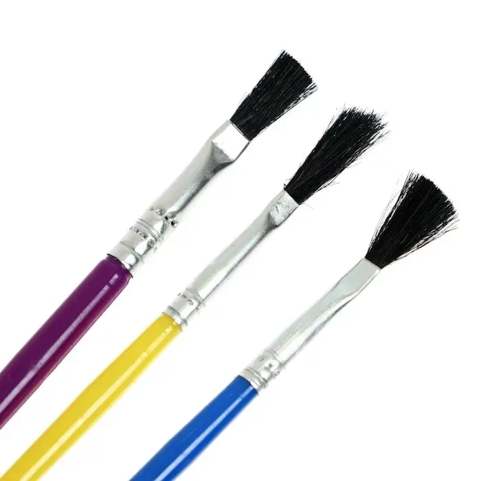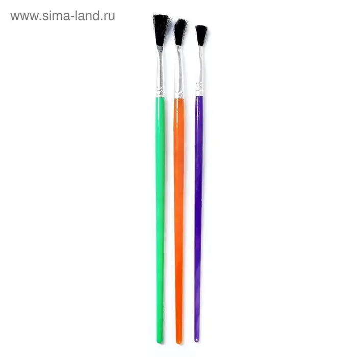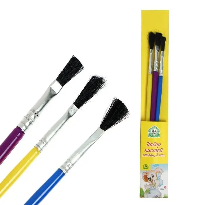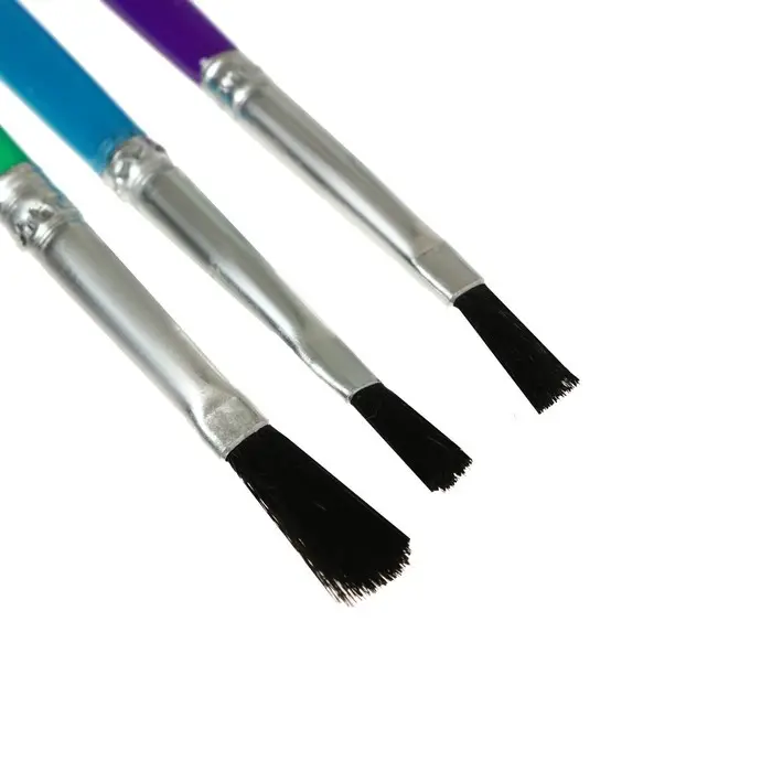Набор кистей нейлон, 3 штуки, плоские, с пластиковыми, цветными ручками