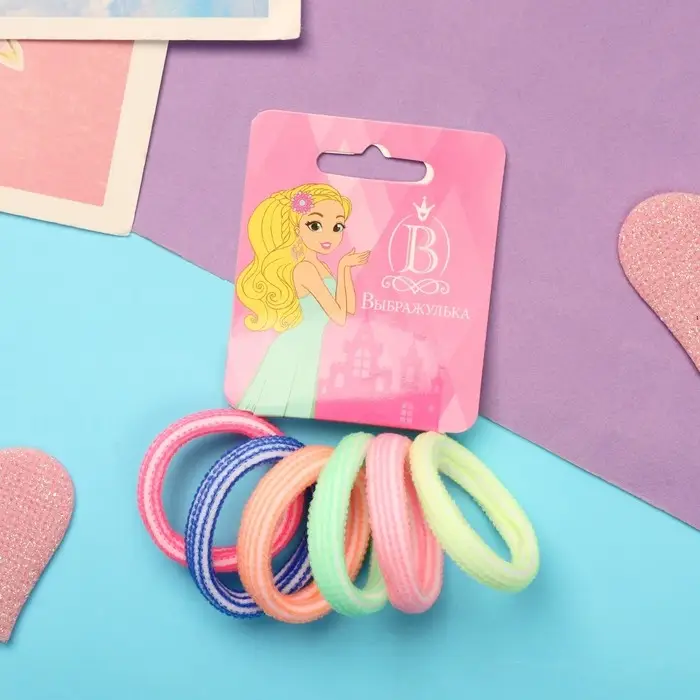 Резинка для волос "Махрушка полоска" (набор 6 шт) яркая двухцветная