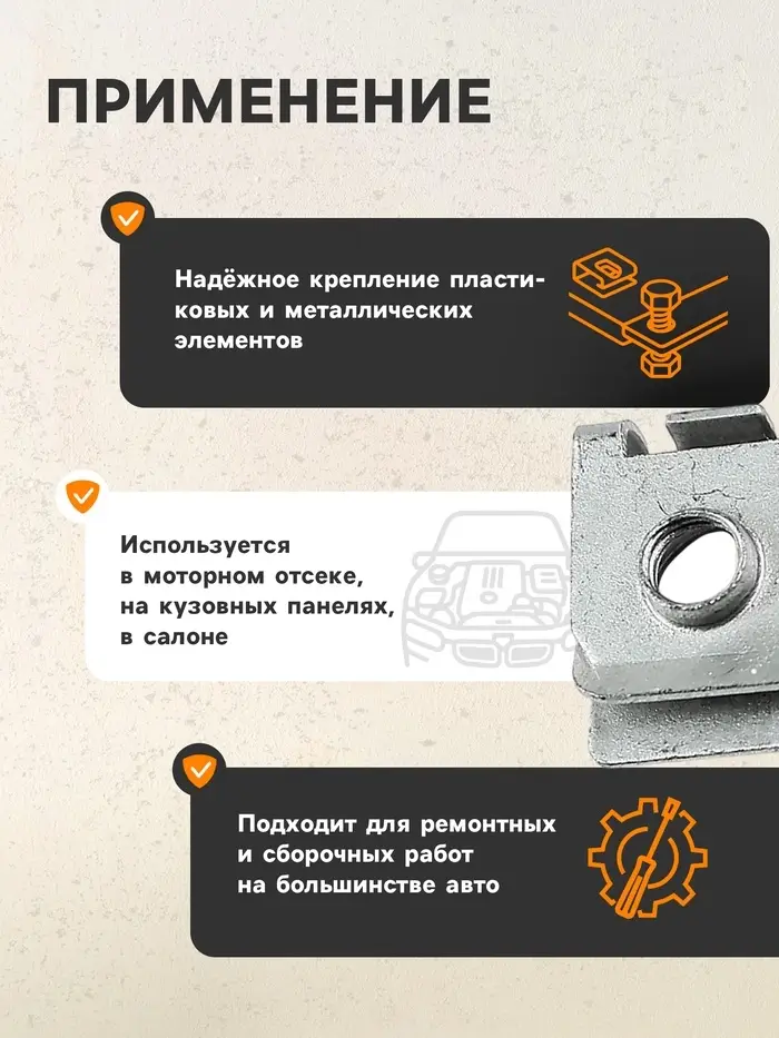 Клипса-фиксатор металлическая М6 предназначена для крепления и фиксации различных элементов в автомобильной промышленности, а также в других отраслях. Изготовлена из качественного металла, что обеспечивает ее прочность и долговечность. Модель имеет код КП-0155.