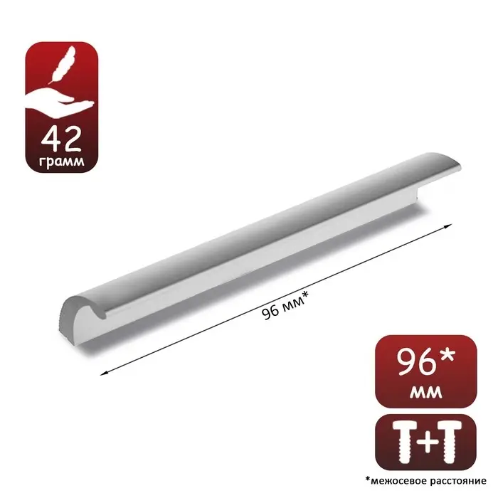 Ручка устанавливается на фасадах ящиков тумб или комодов. Крепится к поверхности мебели с помощью двух винтов. Модель выполнена из прочного алюминия и имеет серебристый цвет.