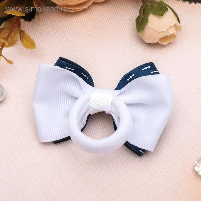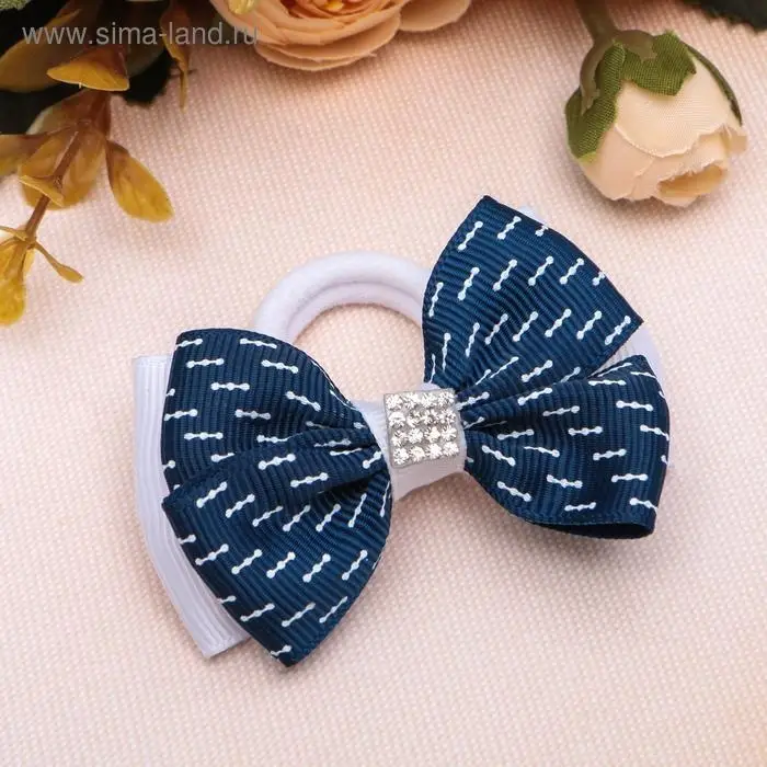 Резинка для волос «Школьница», бант штрихи, 6.5 см, сине-белая