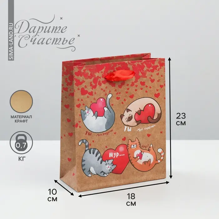 Пакет подарочный крафтовый, упаковка, «Ты – мое счастье!», MS 18 х 23 х 10 см
