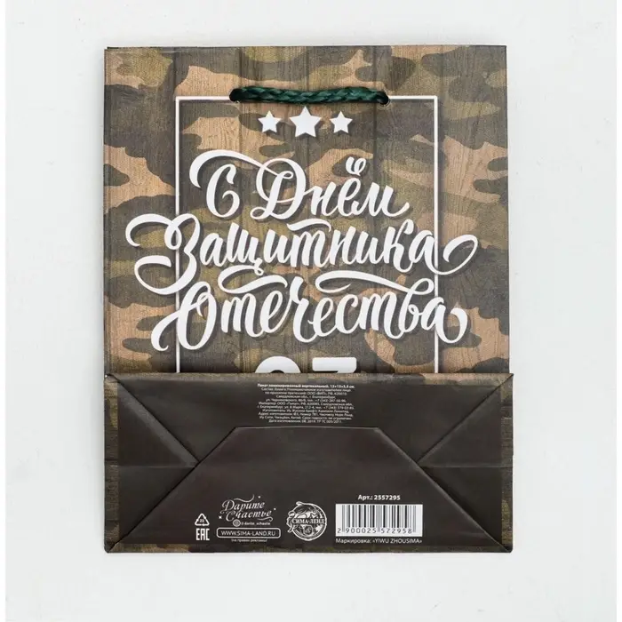 Пакет подарочный ламинированный, упаковка, «С 23 февраля», S 12 х 15 х 5.5 см