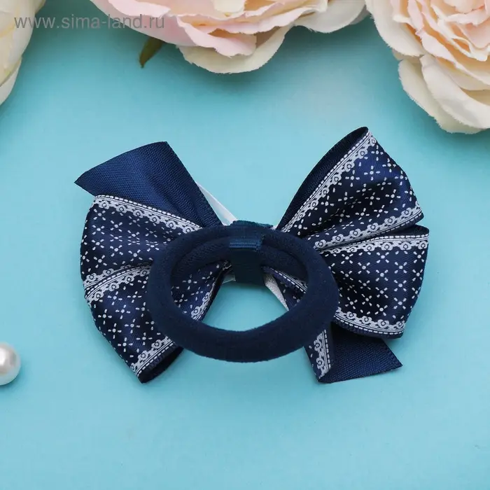 Резинка для волос «Школьница», бант мелкий узор, 8 см, бело-синяя