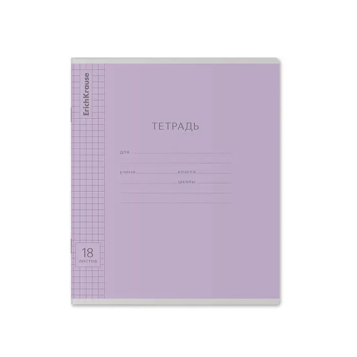 Тетрадь 18 листов в клетку, ErichKrause «Классика», обложка мелованный картон, блок офсет 100% белизна, фиолетовая