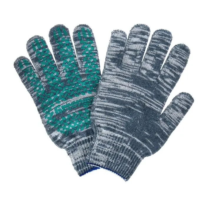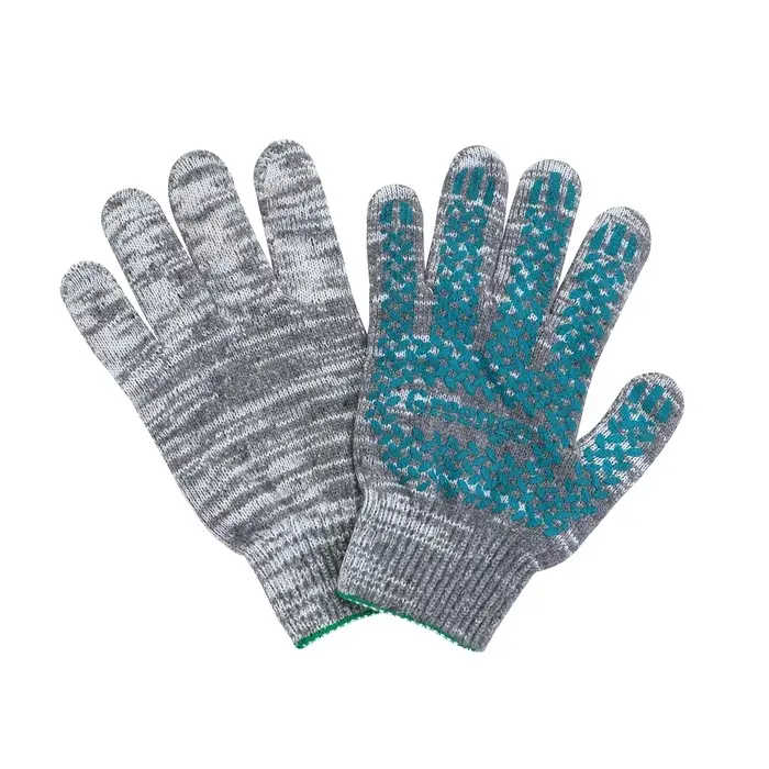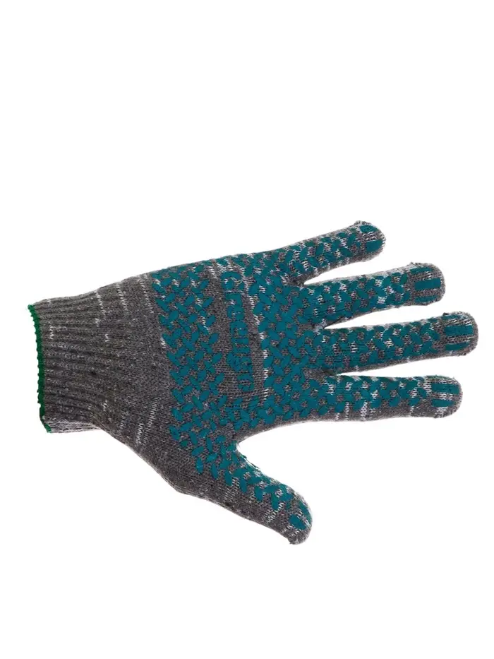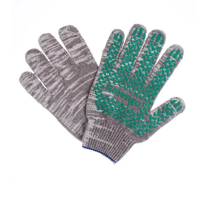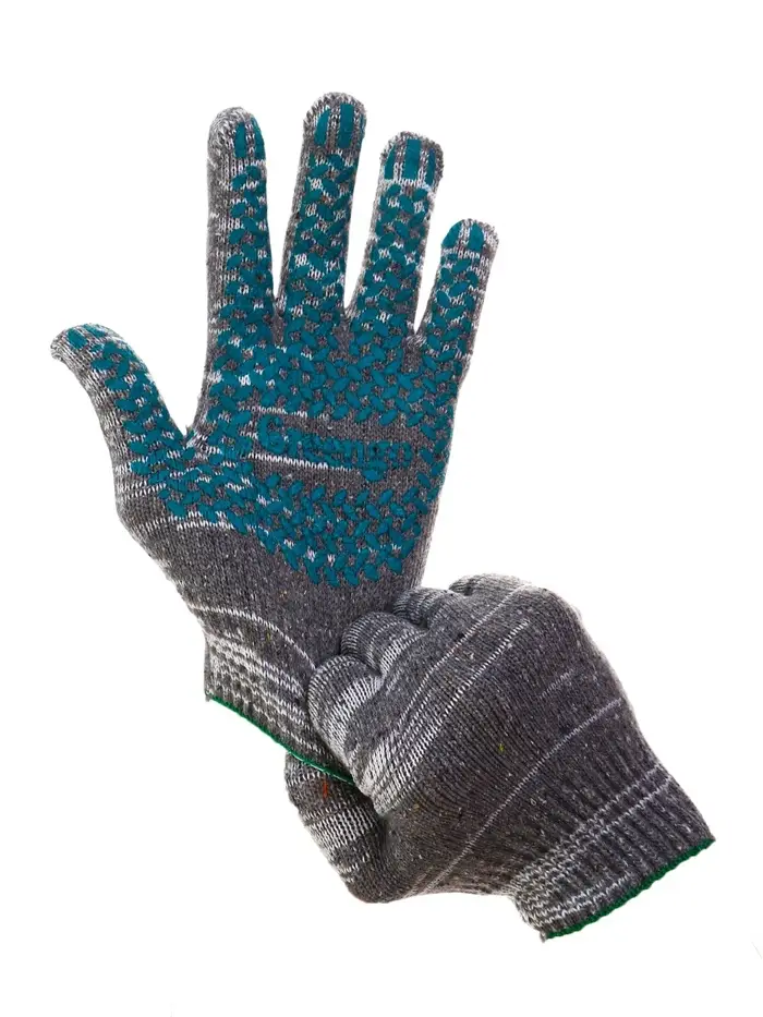 Перчатки садовые, хб, вязка 10 класс, 6 нитей, размер 9, с ПВХ точками, серые, Greengo