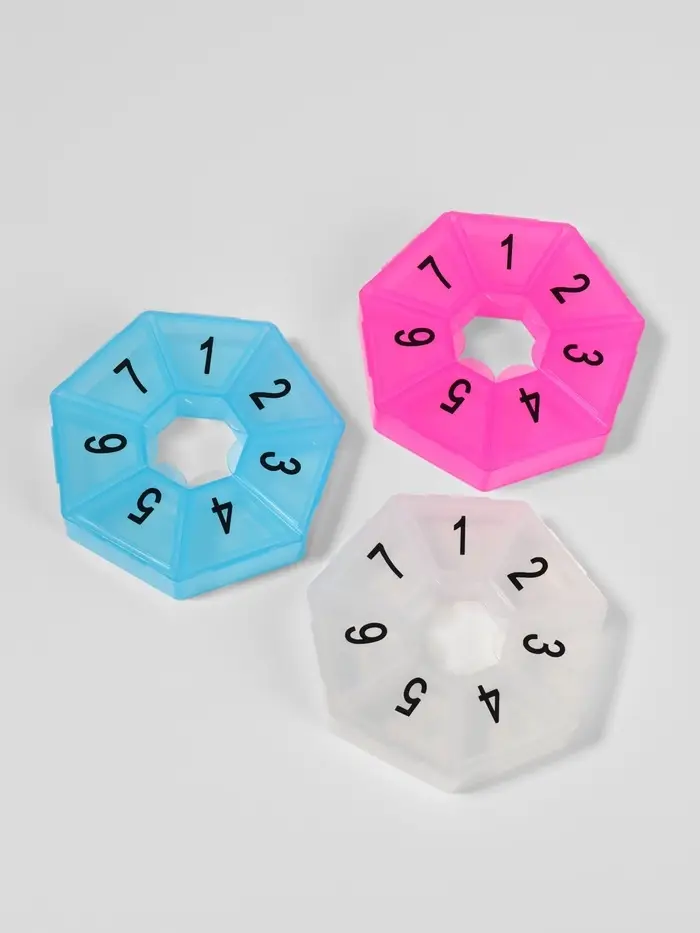 Таблетница «Цифры», 7.5×7.5×1.7 см, 7 секций, МИКС