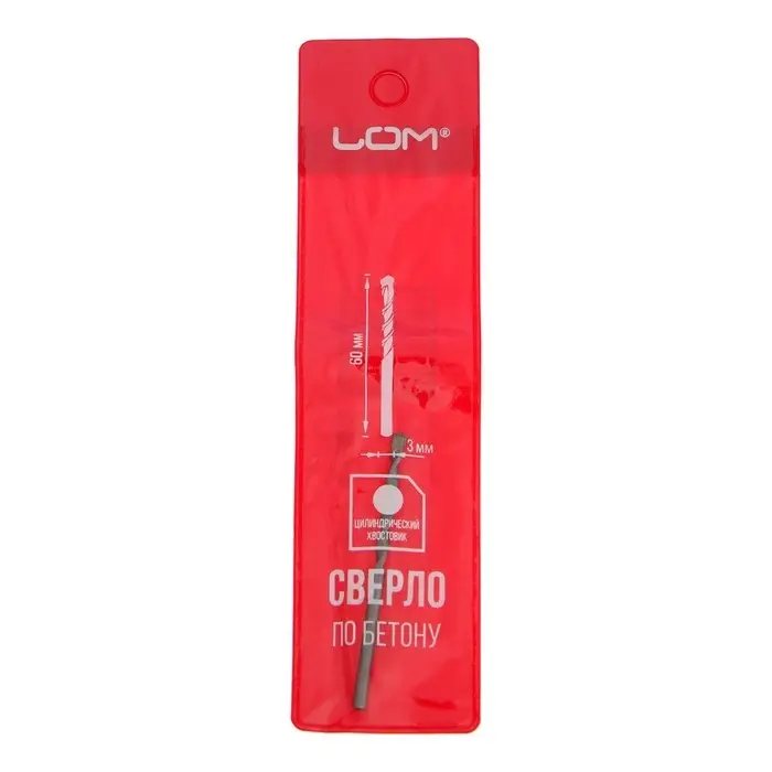 Сверло по бетону ЛОМ, цилиндрический хвостовик, 3×60 мм