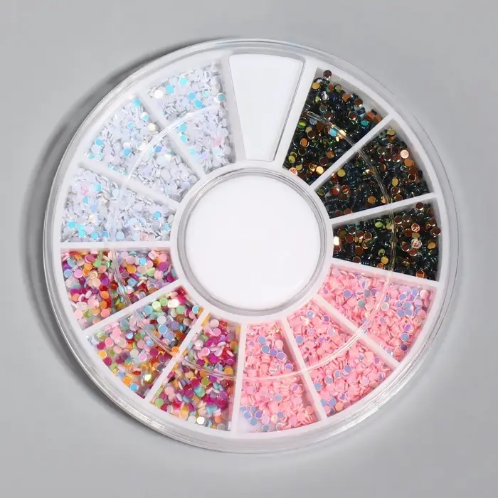 Стразы для декора ногтей, 12 ячеек, 2 мм, разноцветные