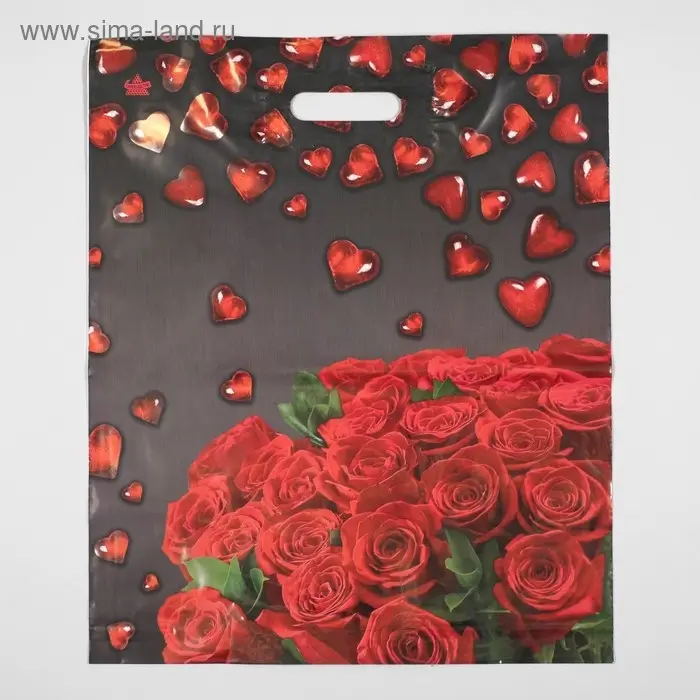 Пакет "Три красные розы" полиэтиленовый с вырубной ручкой, 31х40 см, 60 мкм