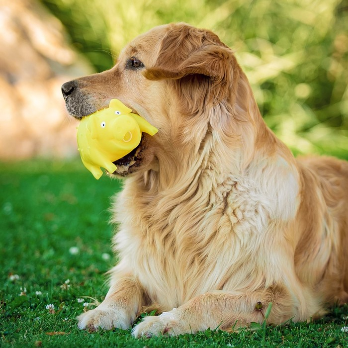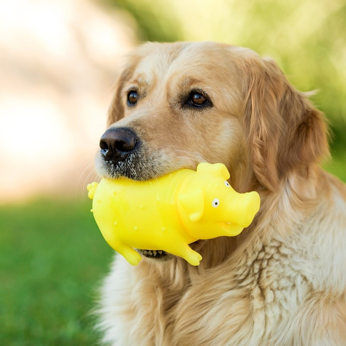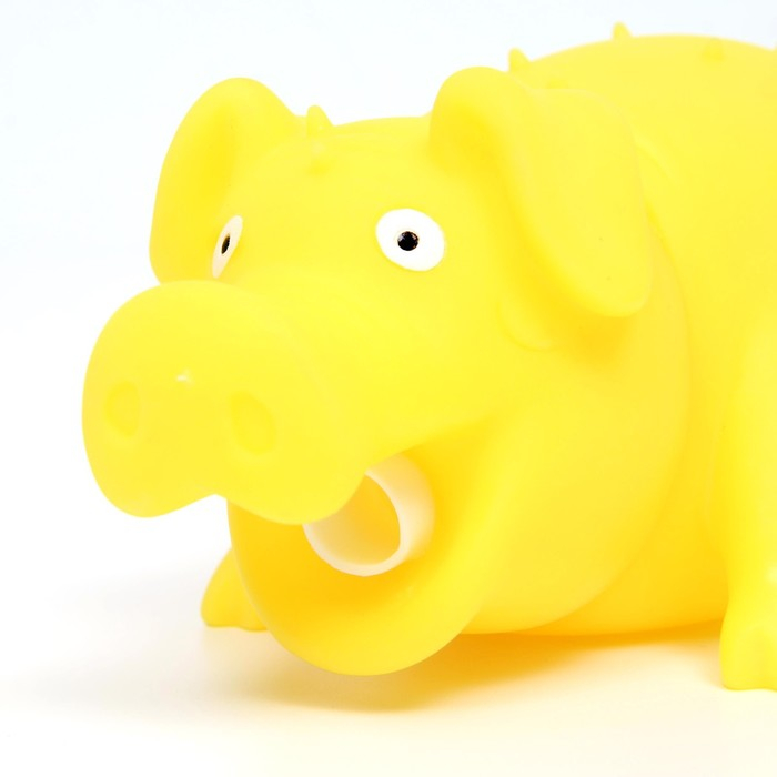 Игрушка пищащая "Весёлая свинья" для собак, хрюкающая, 19 см, жёлтая