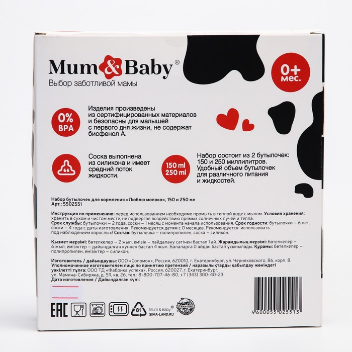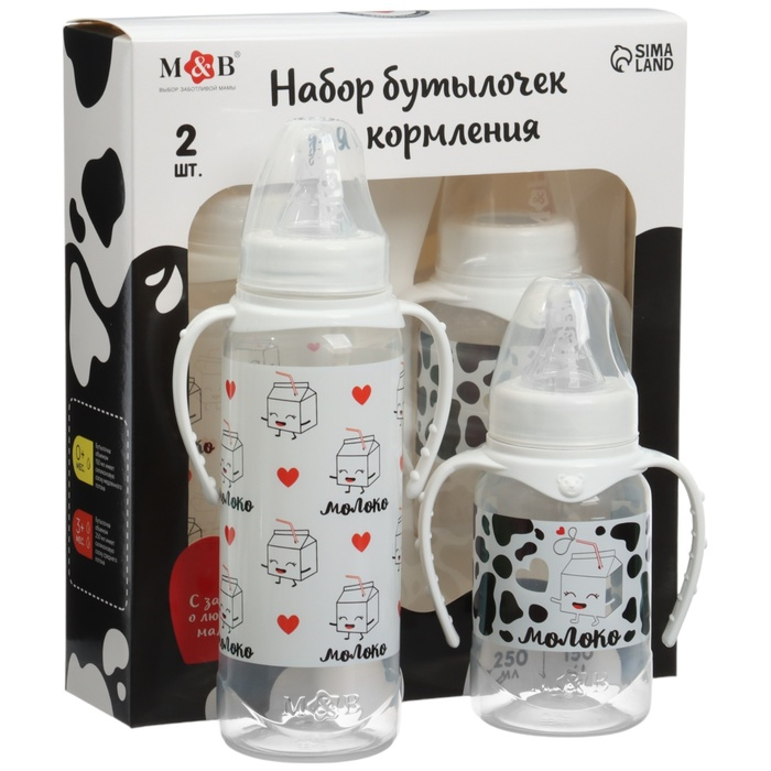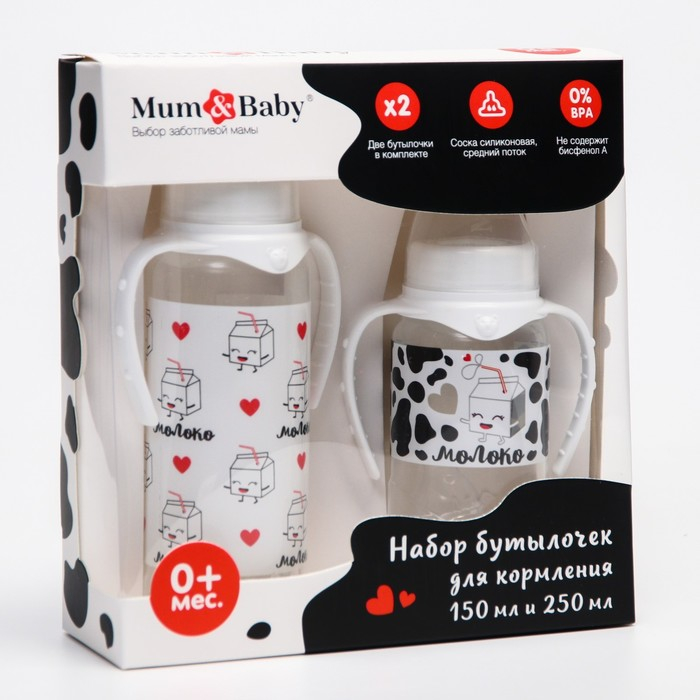 Набор бутылочек для кормления «Люблю молоко» 150 и 250 мл