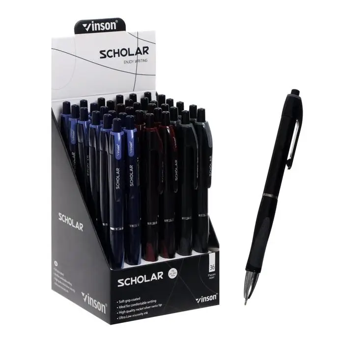 Ручка шариковая, автоматическая Vinson 0.5 мм, с резиновым держателем, стержень масляный синий, МИКС