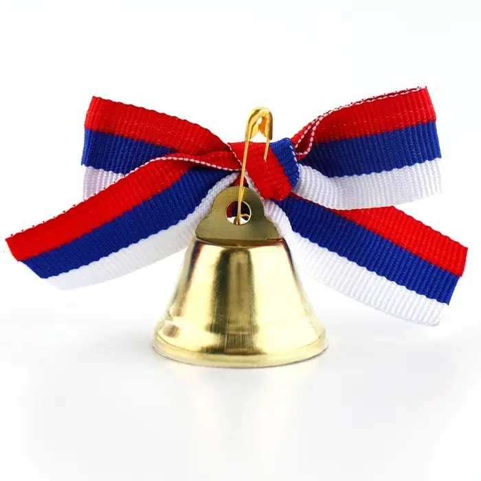 Колокольчик на булавке с бантом на выпускной, триколор, d = 2,6 см