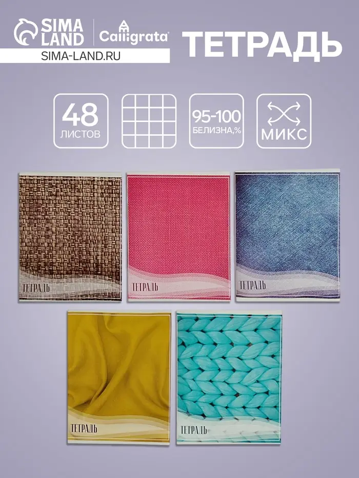 Тетрадь 96 листов в клетку Calligrata "Текстура 2", обложка мелованный картон, блок офсет, МИКС