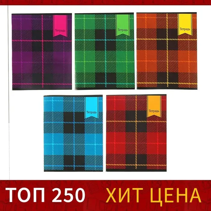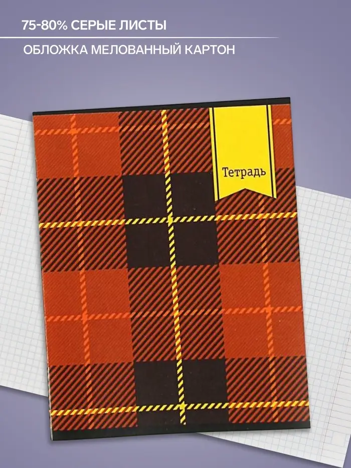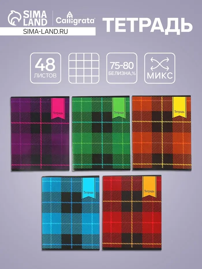 Тетрадь 48 листов в клетку Calligrata «Шотландка», обложка мелованный картон, блок №2, белизна 75% (серые листы), МИКС