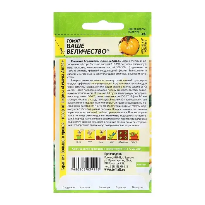 Семена Томат "Ваше Величество", среднеспелый, цп,индетерминантный,высокорослый, 0,05 г