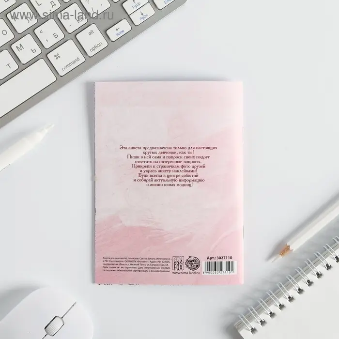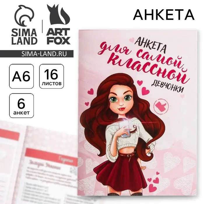 Анкета для девочек «Для самой классной девчонки», А6, 16 листов