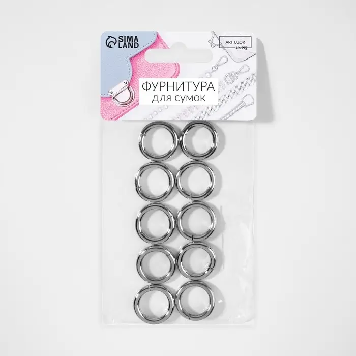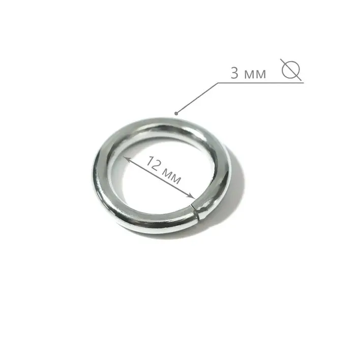 Кольца для сумок, d=12 мм, толщина - 3 мм, 10 шт., цвет серебряный