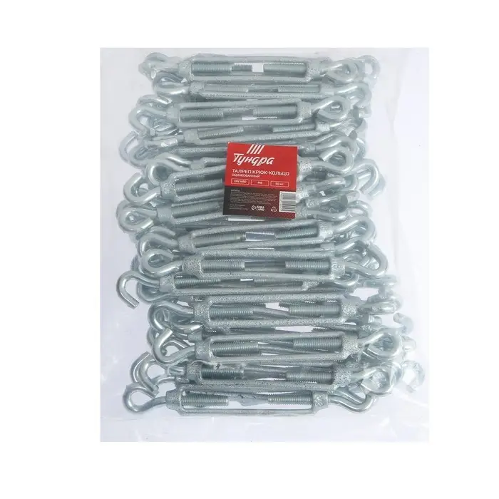 Талреп крюк-кольцо «Тундра krep» отвечает за регулирование длины и степени натяжения каната, цепи, троса в грузоподъемных системах. Применим при установке антенн, мачт, столбов и прокладке линий электропередач.