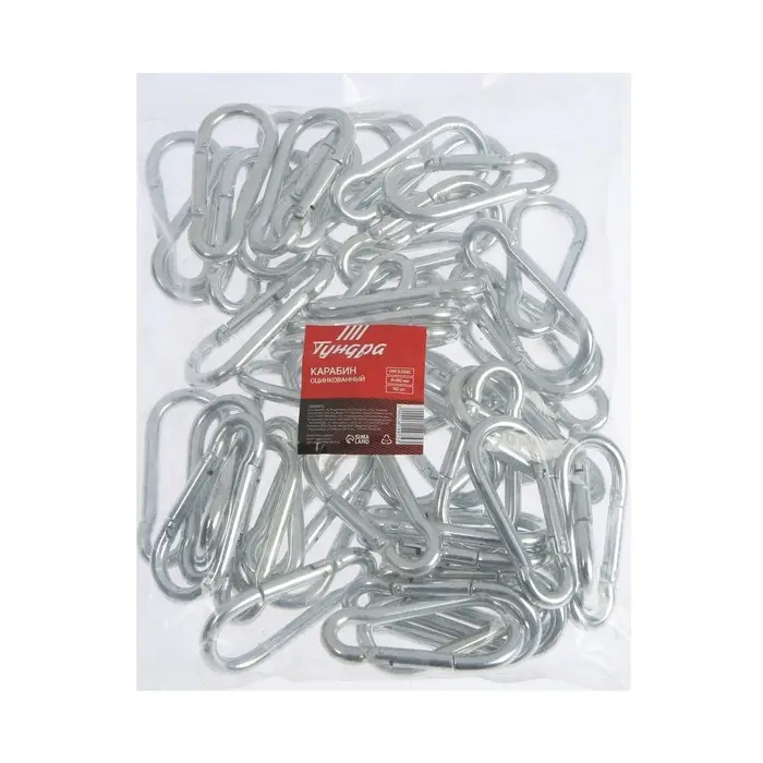 Карабин ТУНДРА krep изготовлен из высококачественного металла и оцинкован, что защищает его от коррозии.