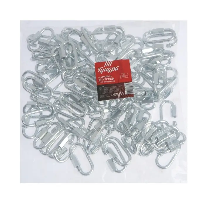 Карабин винтовой ТУНДРА krep изготовлен из высококачественного металла и оцинкован, что защищает его от коррозии.