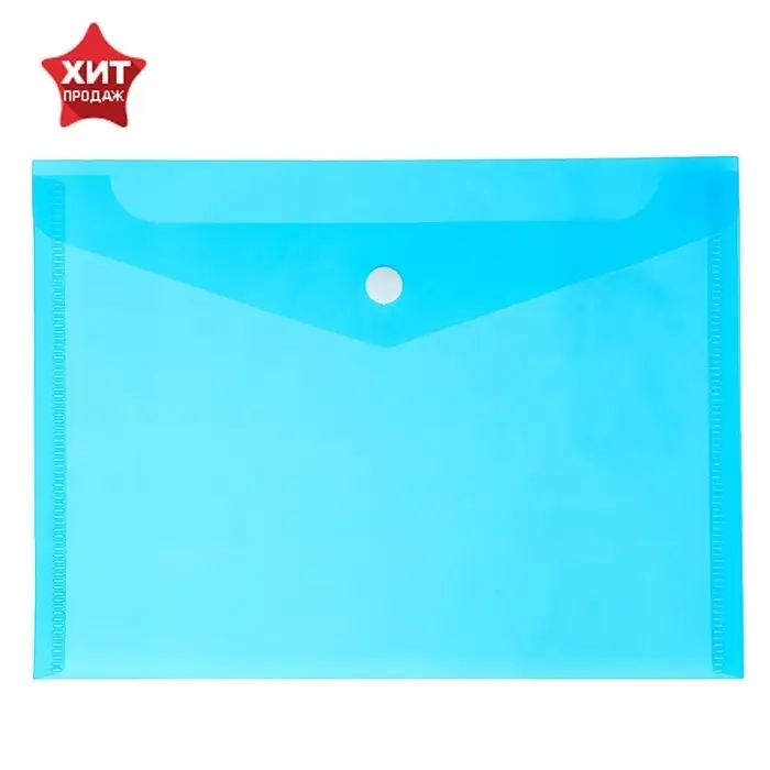 Папка-конверт на кнопке А5, 180 мкм, Calligrata Office, полупрозрачная, синяя