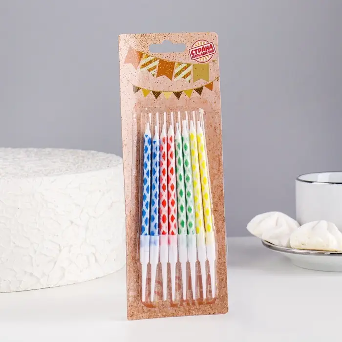 Свечи в торт «Ромбик» с подставкой, 14 см, 8 шт.