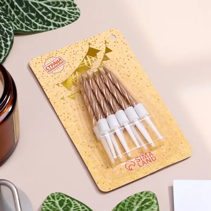 Свечи в торт «Спираль», 10 шт., средние, 5 см, шампань