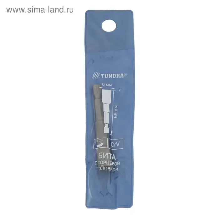 Бита с торцевой головкой ТУНДРА, сталь CrV, магнит, 6 х 65 мм