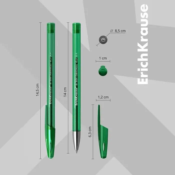 Классическая гелевая ручка Stick с металлизированными элементами, стандартным типом пишущего узла и заменяемым стержнем. Ручка имеет полупрозрачный круглый корпус насыщенных цветов с удобной профилированной грип-зоной и вентилируемый колпачок. Цвет корпуса и колпачка соответствует цвету чернил. 5-канальный пишущий узел с диаметром шарика 0.5 мм в сочетании с гелевыми чернилами обеспечивает точное и быстрое письмо без усилий. Длина непрерывной линии составляет 600 м при толщине 0.4 мм, что является высоким показателем в своей категории. Модель R-301 Original Gel 0.5 имеет элегантную форму и является абсолютным бестселлером в ассортименте гелевых ручек ErichKrause® более чем в пятидесяти странах мира.