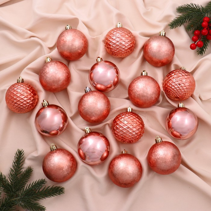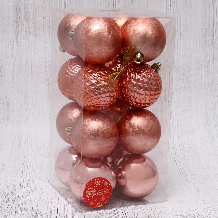 Набор шаров пластик d-7 см, 16 шт "Алета сеточка ассорти" розовое золото