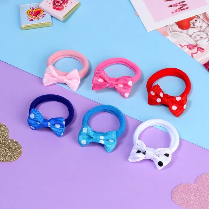 Резинки для волос «Бантик», набор 6 шт., горошек