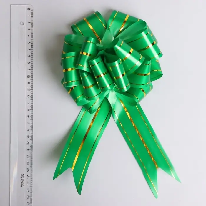 Благодаря сочетанию зелёного цвета и золотых полос, бант выглядит стильно и современно. Его легко закрепить на любой поверхности, а прочный материал гарантирует, что он сохранит форму даже после длительного использования.