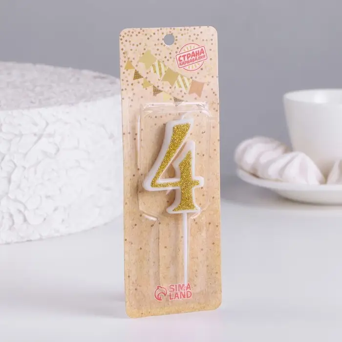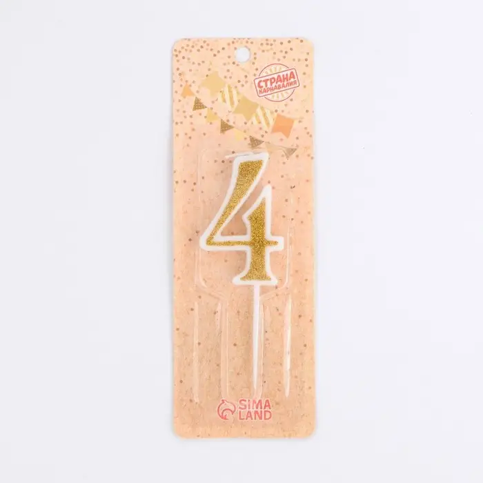 Свеча для торта с блестками «Цифра 4», золотая, 5.2 см