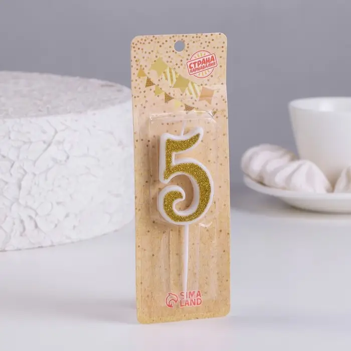 Свеча для торта с блестками «Цифра 5», золотая, 5.2 см