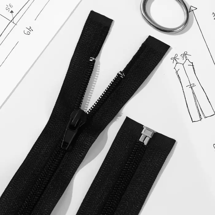 Бегунок плавно перемещается по зубчикам. Молния является разъёмной — замочек на конце полностью расстёгивается. Номер обозначает ширину зубчиков в миллиметрах. Чаще всего такую застёжку используют для шитья толстовок, спортивных вещей, туристического снаряжения и многого другого.
