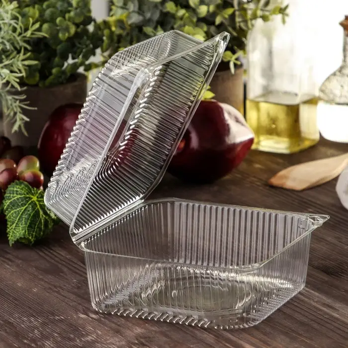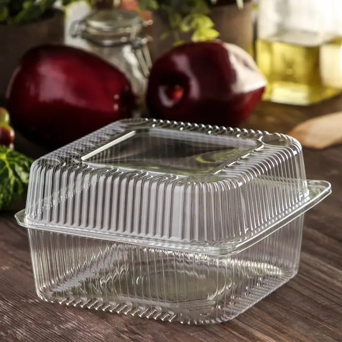 Контейнер одноразовый с неразъёмной крышкой ПР-К-15 В, пластик, квадратный, 250 мл, 15.2×8.1 см, прозрачный