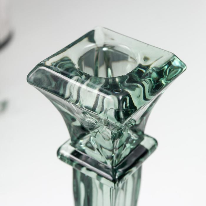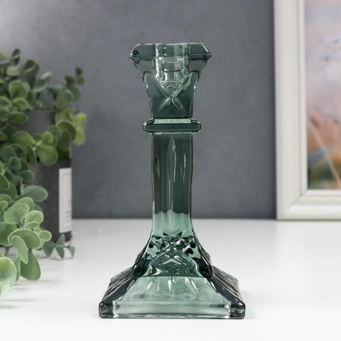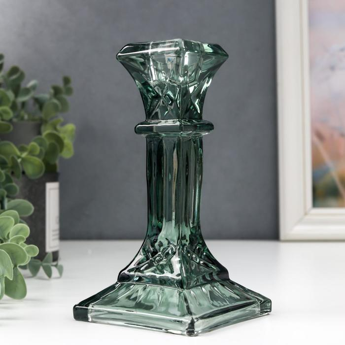 Подсвечник стекло на 1 свечу "Колонна прямоугольная" зелёный прозрачный 16х8,6х8,6 см